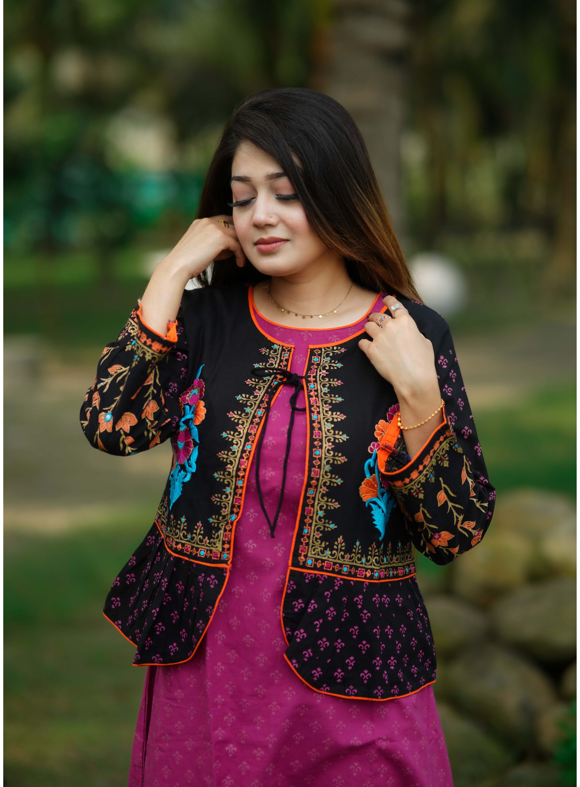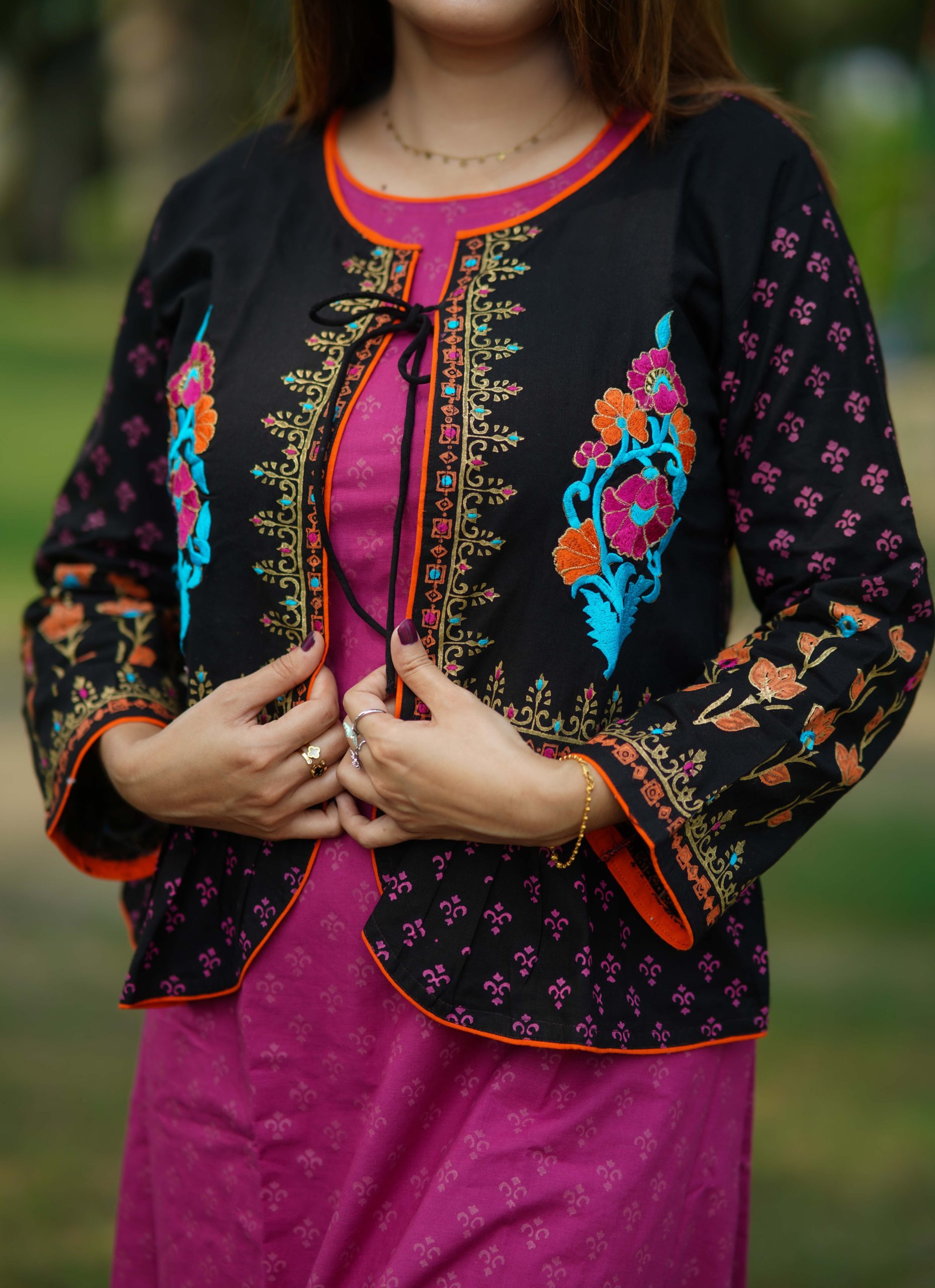 কাজঃ স্থায়ী ব্লক প্রিন্ট ও এমব্রইয়ডারির অসাধারণ কাজ করা হয়েছে।