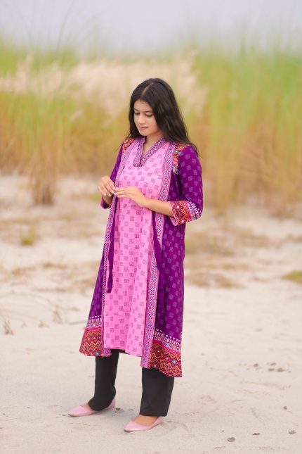 কাজঃ স্থায়ী ব্লক প্রিন্ট ও এমব্রইয়ডারির অসাধারণ কাজ করা হয়েছে।