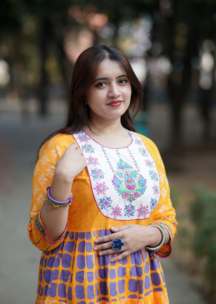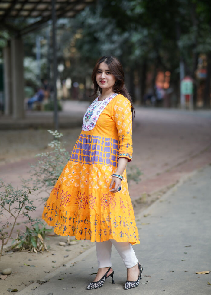 কাজঃ স্থায়ী ব্লক প্রিন্ট ও এমব্রইয়ডারির অসাধারণ কাজ করা হয়েছে।