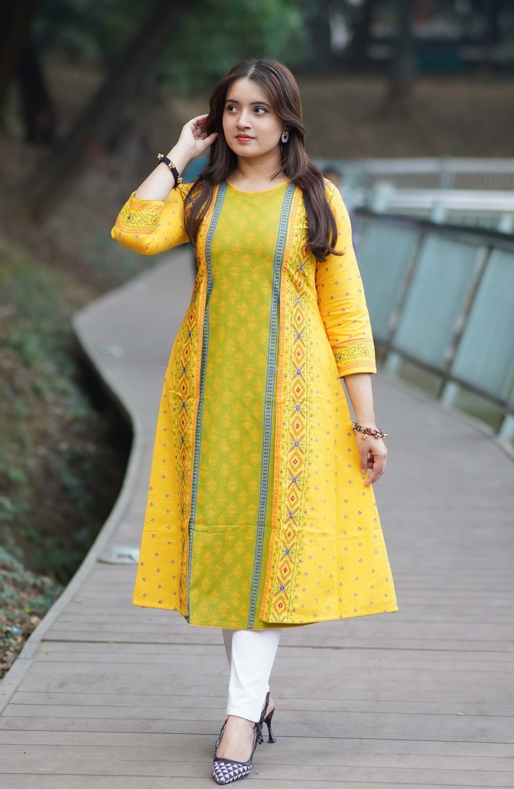 উন্নত মানের কটন ও নান্দনিক স্থায়ী ব্লক প্রিন্ট করা হয়েছে এবং দৈর্ঘ্য ৯০ ইঞ্চি – প্রস্থ ৩৬ ইঞ্চি