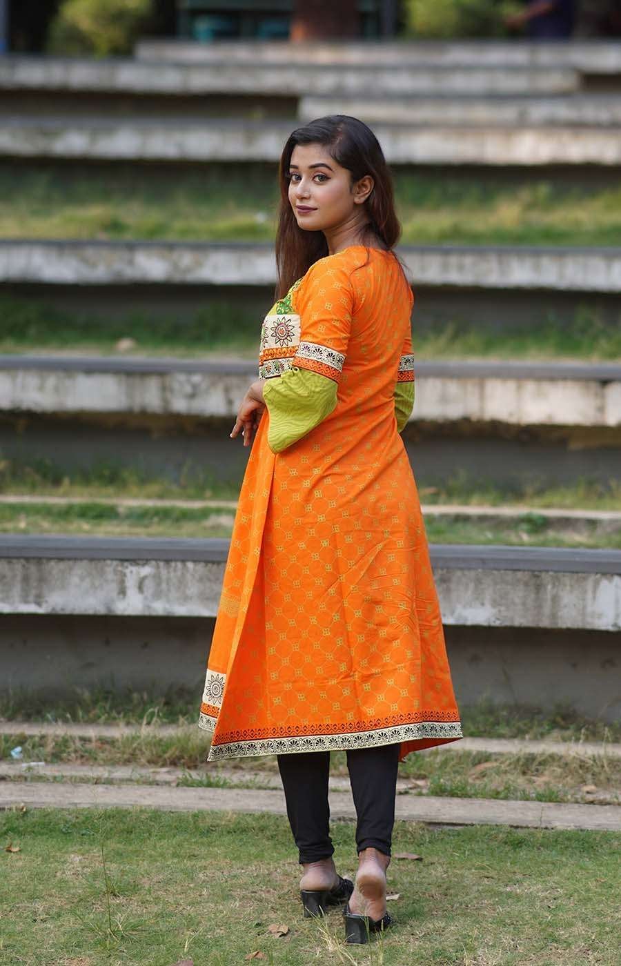 উন্নত মানের কটন ও নান্দনিক স্থায়ী ব্লক প্রিন্ট করা হয়েছে এবং দৈর্ঘ্য ৯০ ইঞ্চি – প্রস্থ ৩৬ ইঞ্চি