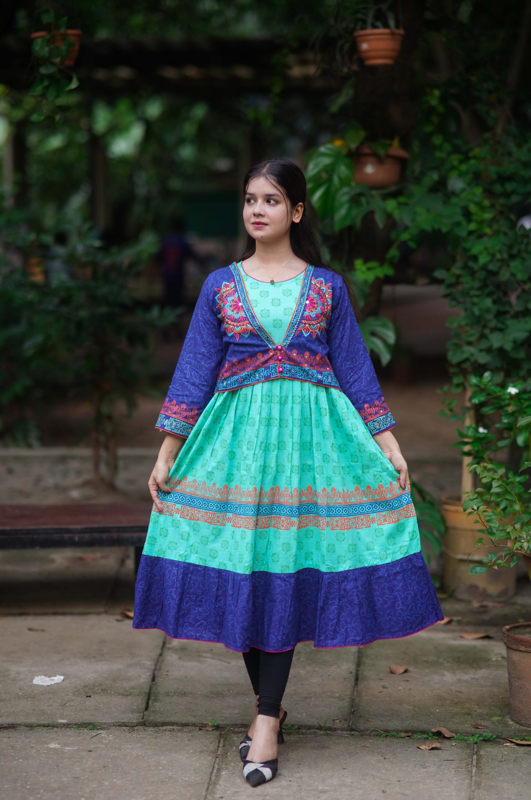 কাজঃ স্থায়ী ব্লক প্রিন্ট ও এমব্রইয়ডারির অসাধারণ কাজ করা হয়েছে।