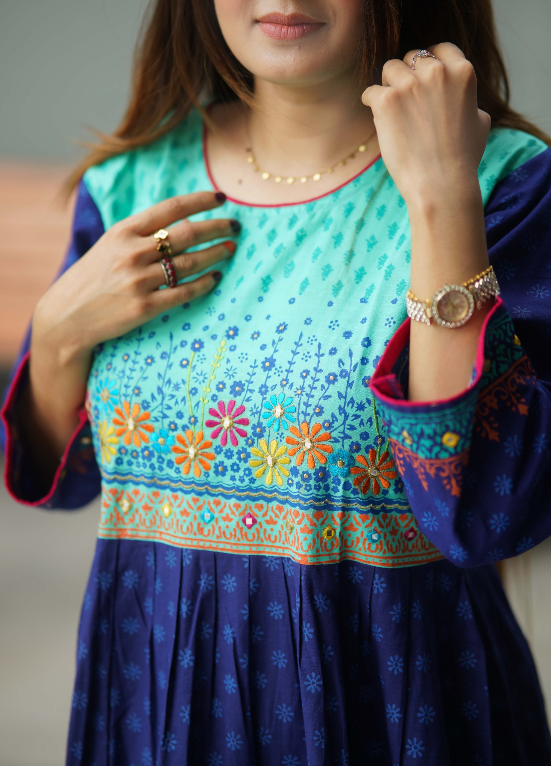 কাজঃ স্থায়ী ব্লক প্রিন্ট ও এমব্রইয়ডারির অসাধারণ কাজ করা হয়েছে।