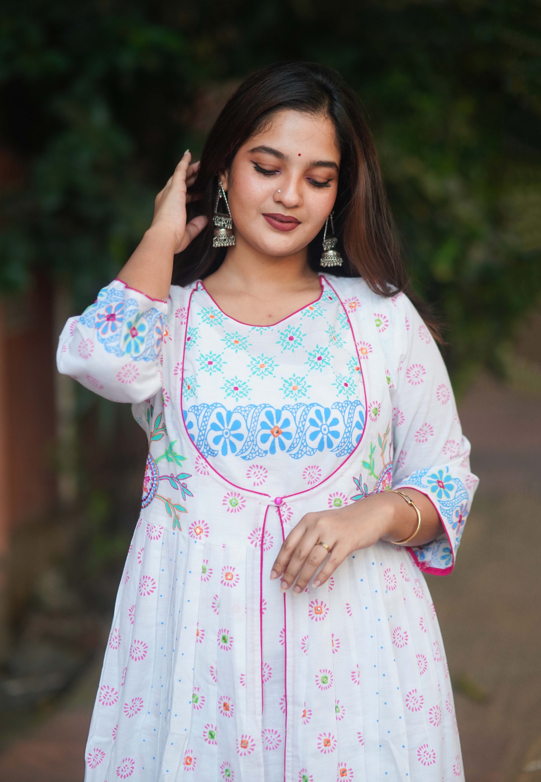 কাজঃ স্থায়ী ব্লক প্রিন্ট ও এমব্রইয়ডারির অসাধারণ কাজ করা হয়েছে।