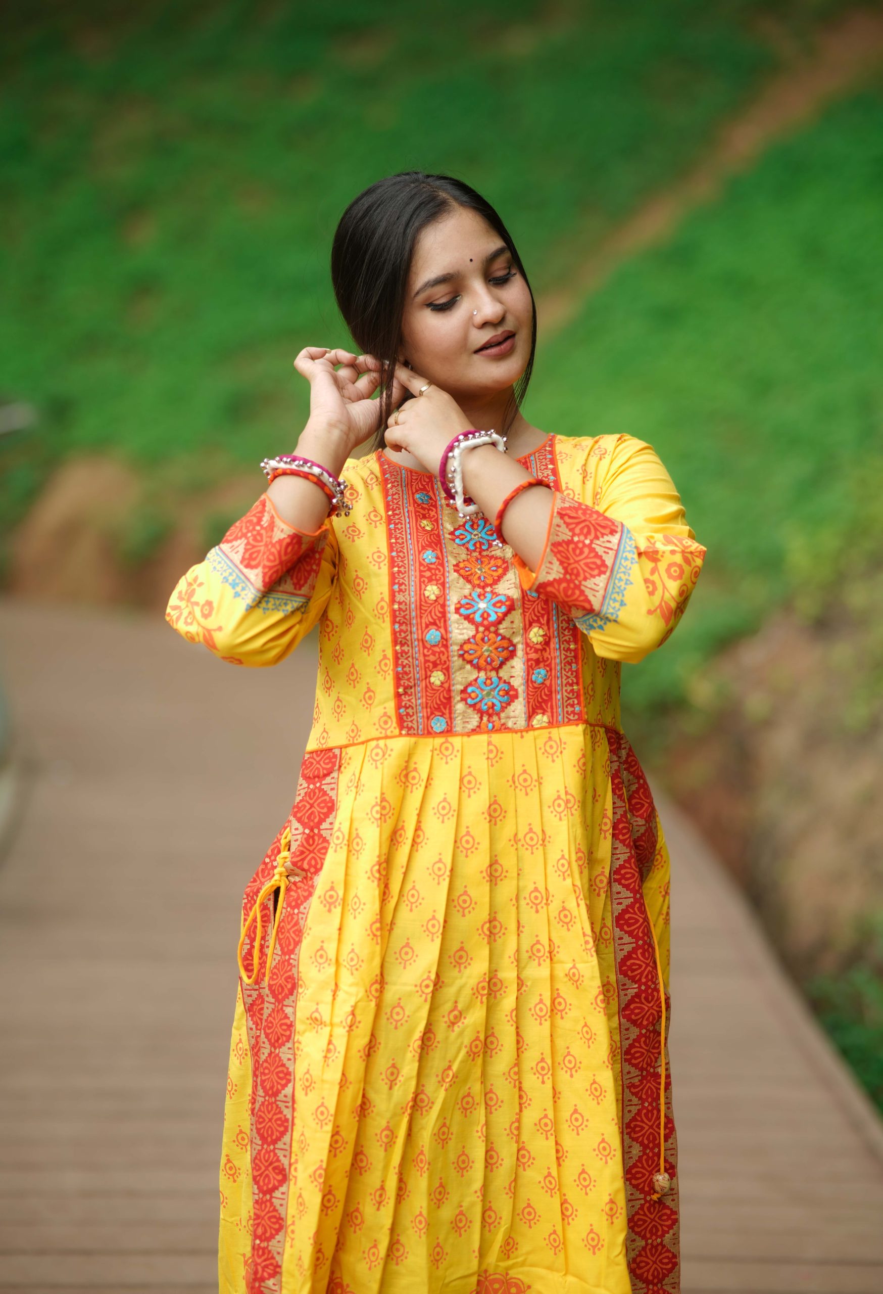 উন্নত মানের কটন ও নান্দনিক স্থায়ী ব্লক প্রিন্ট করা হয়েছে এবং দৈর্ঘ্য ৯০ ইঞ্চি – প্রস্থ ৩৬ ইঞ্চি