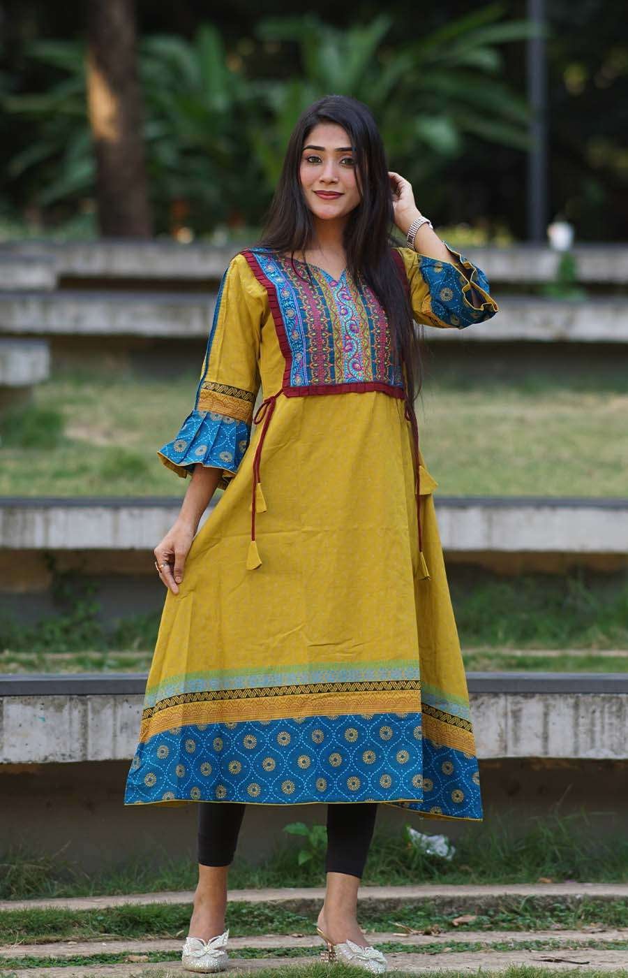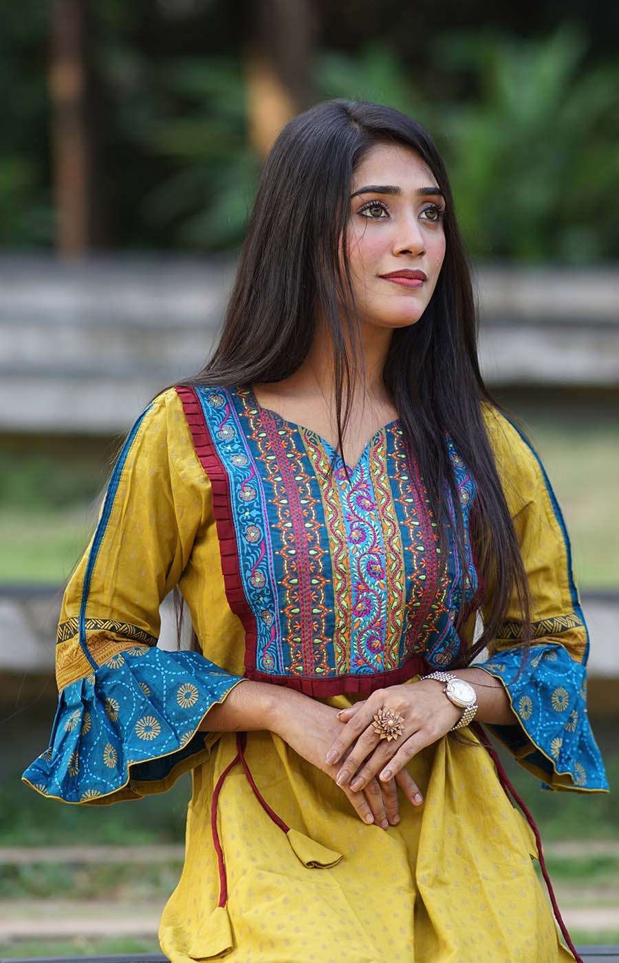 কাজঃ স্থায়ী ব্লক প্রিন্ট ও এমব্রইয়ডারির অসাধারণ কাজ করা হয়েছে।