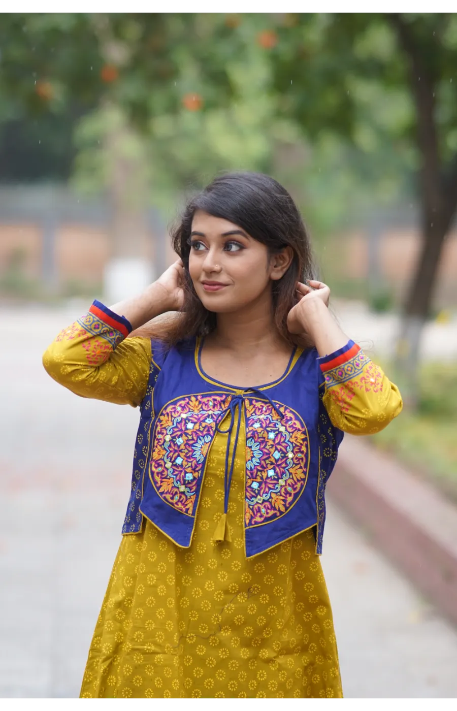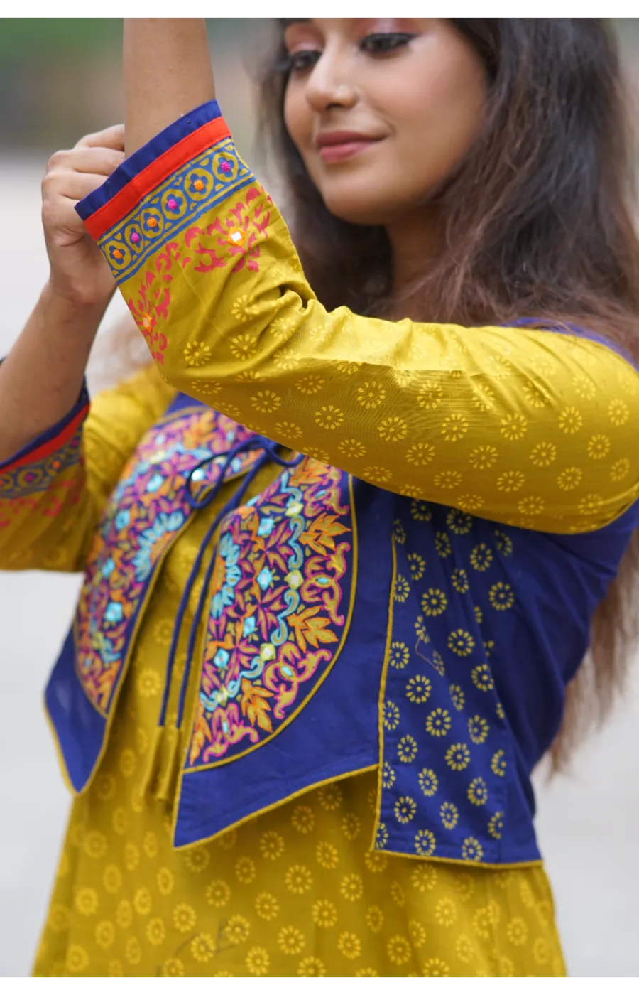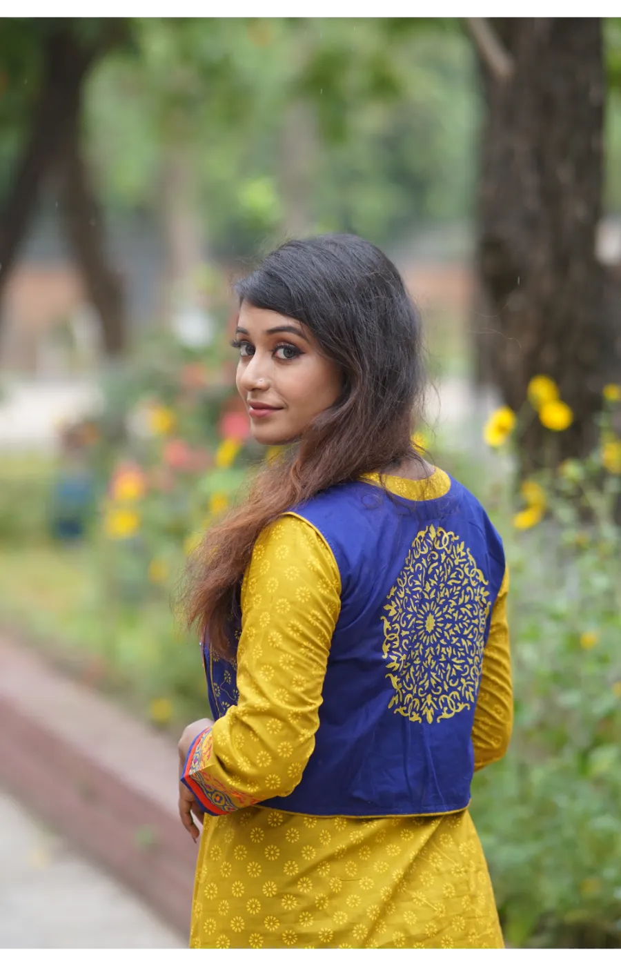 কাজঃ স্থায়ী ব্লক প্রিন্ট ও এমব্রইয়ডারির অসাধারণ কাজ করা হয়েছে।