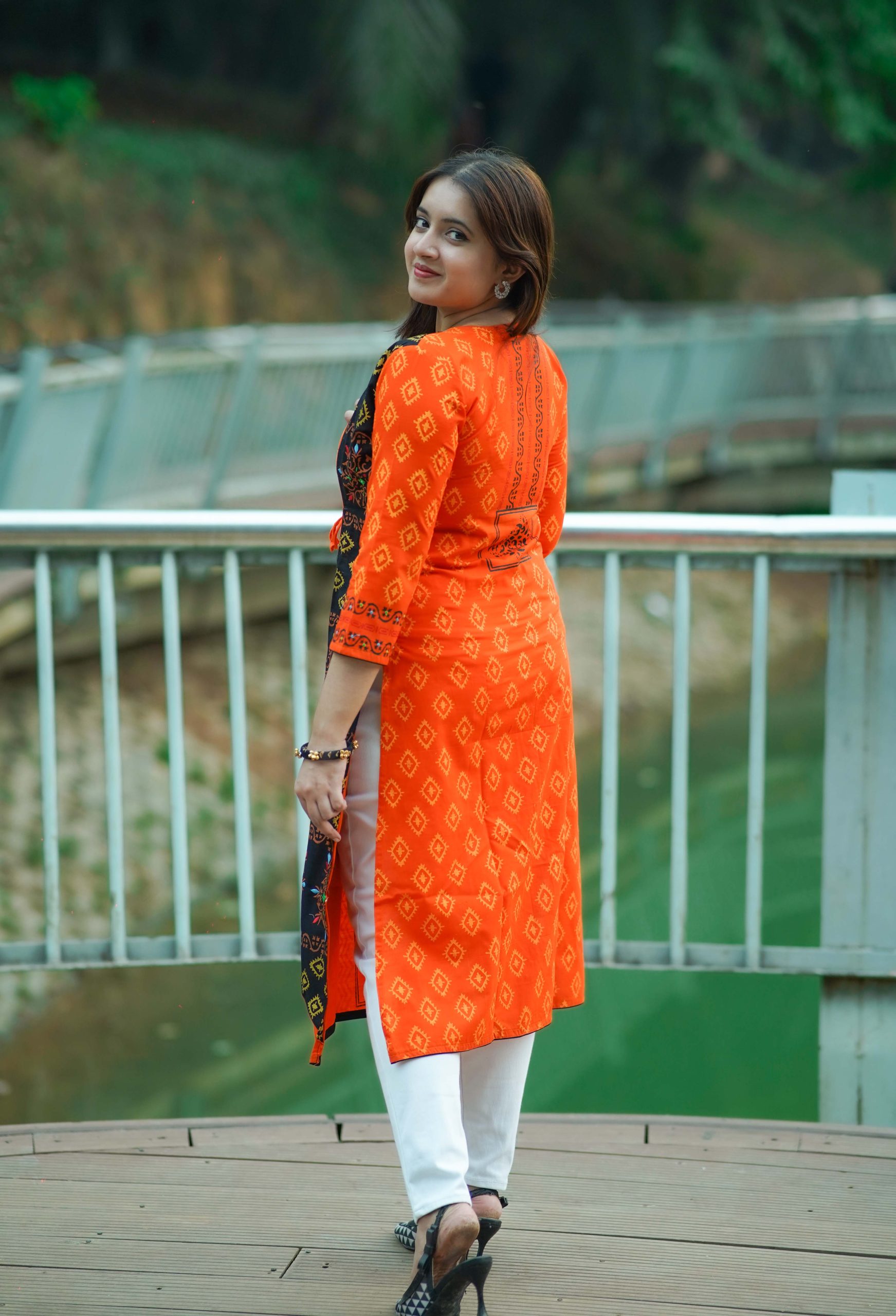 উন্নত মানের কটন ও নান্দনিক স্থায়ী ব্লক প্রিন্ট করা হয়েছে এবং দৈর্ঘ্য ৯০ ইঞ্চি – প্রস্থ ৩৬ ইঞ্চি